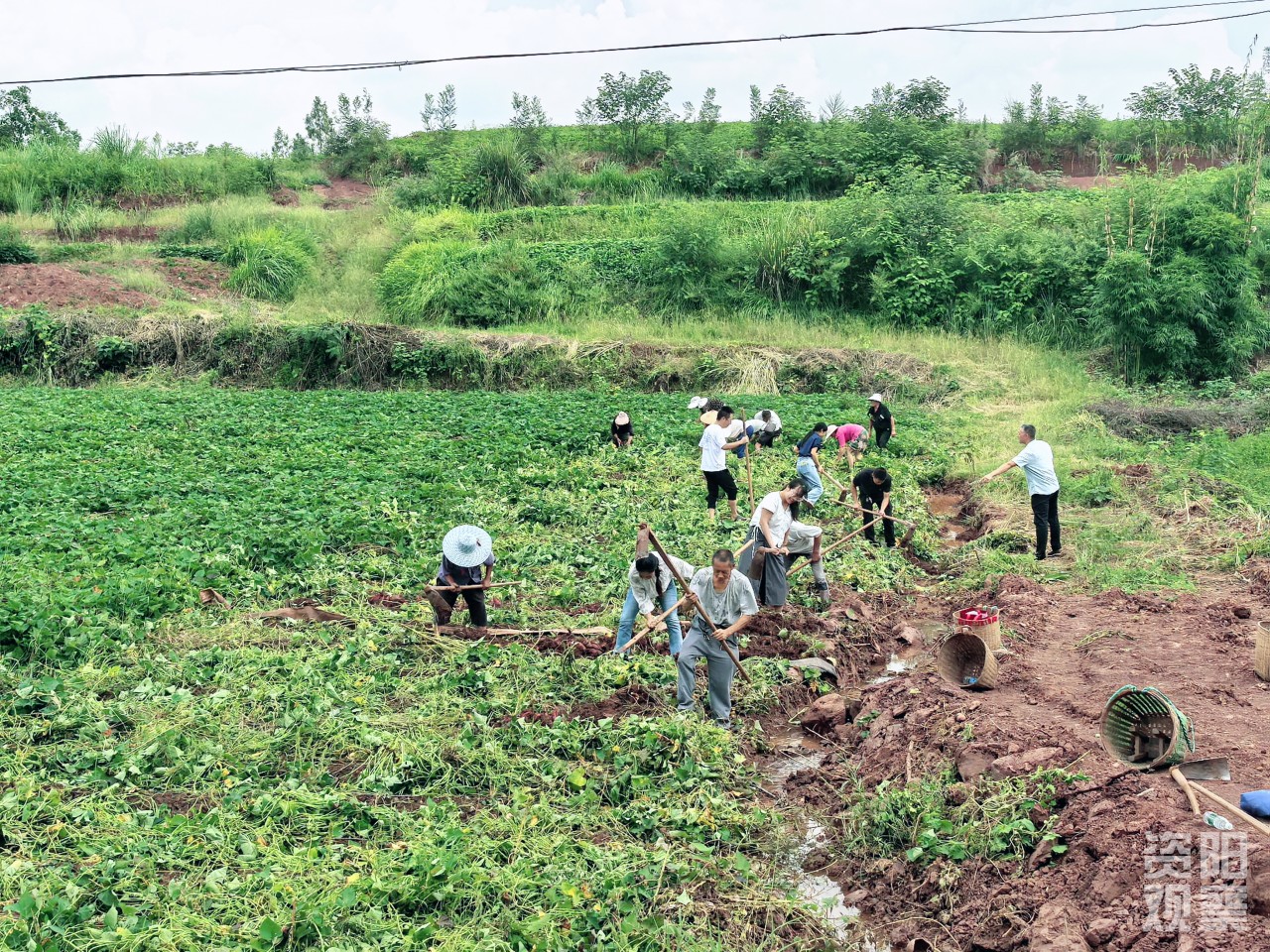 海棠村村民正在挖紅薯。
