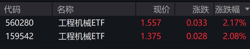 受盤面影響,跟蹤中證工程機(jī)械主題指數(shù)的工程機(jī)械ETF漲超2%。
