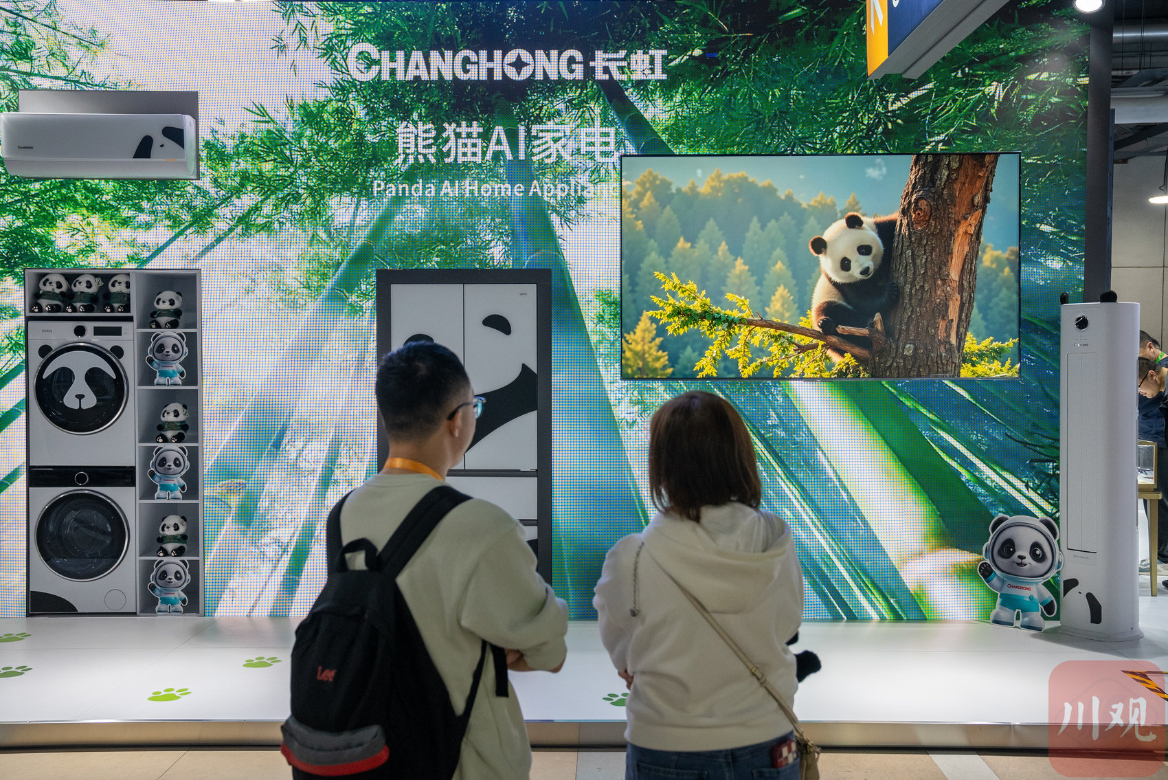 電視機(jī)、洗衣機(jī)、冰箱、空調(diào)這些常規(guī)家電產(chǎn)品,還能翻出什么新花樣?四川館入口的一整面墻,變成了呆萌可愛的“熊貓樂園”,而上述這些家電,根據(jù)熊貓的形象全部換了個(gè)“造型”。作為長虹在國內(nèi)首次亮相的熊貓AI家電,此次主打一個(gè)出其不意,受到了觀眾特別是國外采購商和專業(yè)觀眾的喜愛。